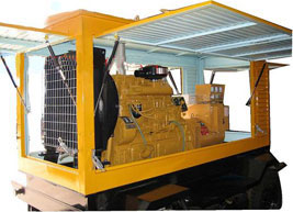 平塘柴油发电机组/移动柴油发电机组设计独具创新,机动性高、重心低、制动安全、制造精良、外形美观。 平塘拖车车架采用槽梁焊接成框架结构,节点选择合理、强度高、刚性好;同时装有钢板弹簧悬架结构;拖车采用高度可调节插销式牵引架,适用于各种高度牵引车;采用圆形钢管焊接直通式车轴,结构紧凑,安全可靠;车架四角设有机械式支撑装置,配备惯性行车制动、驻车制动和脱离应急制动,确保机组在各种状况下的安全;车架前端设有支撑轮,具备承受机组垂直载荷的功能的同时还具备导向功能;整车配备转向和刹车指示灯,同时装有尾灯标准插头